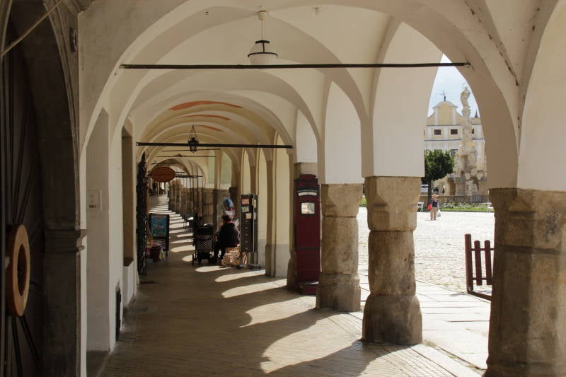 Wil met Blien gaan naar opticien. Bril is niet te maken. Ik probeer met 2-komponentenlijm de zaak te fiksen. We vertrekken naar Telc. Ook dat is een Unesco-dorp. Ab heeft een nieuwe TomTom op zijn telefoon. Die vindt andere wegen dan de onze. We raken elkaar daarom even kwijt. In het volgende dorp treffen we elkaar weer bij de supermarkt. In Telc is een camperplek. Even een parkeerkaartje regelen voor 4 euro. De parkwachter helpt ons. In de regen bekijken we het stadje dat in 1550 verbrand is, maar door de kasteelheer weer in Italiaanse sfeer is herbouwd. Jip houdt ons deze nacht lang wakker.