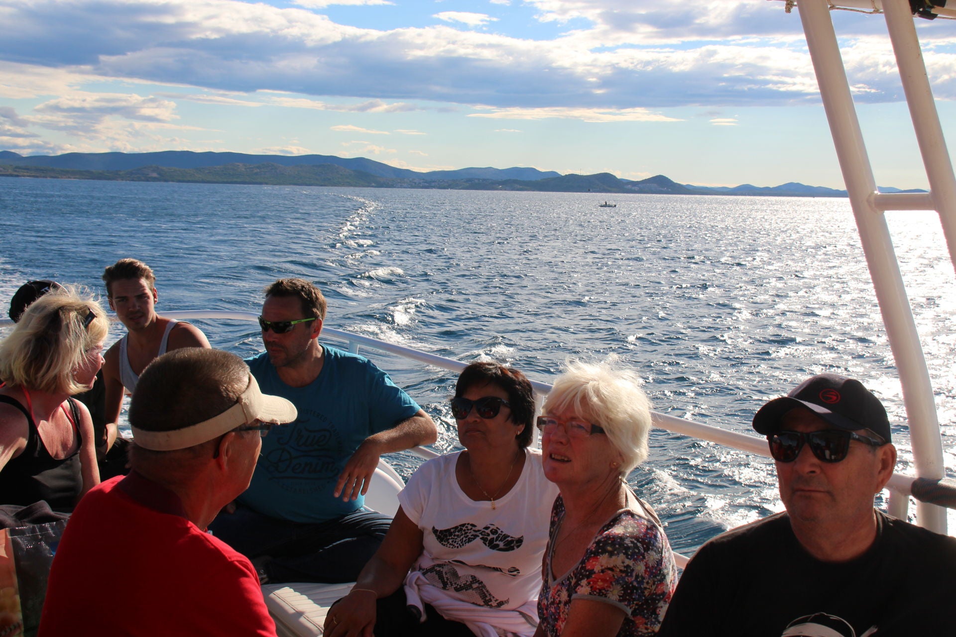 Om 7 uur op want de boot vertrekt om 9 uur. We wachten even op een groep van 40 personen en vertrekken om 9.10 uur. We varen tussen verschillende eilanden door, geven de spullen van het middageten af bij een eiland met restaurant en varen langs de kliffen. We zwemmen wat, eten vlees en vis met witte wijn. Daarna gaan we naar een zoutmeer en zwemmen ook daar nog even. Tijd voor de terugtocht. Het begint wat te waaien en na 3 uur en 90 km zijn we terug. We doen een drankje op een terras bij de haven in de zon en liggen om 9 uur uitgeteld op bed. Poes Jip laat ons lekker slapen.