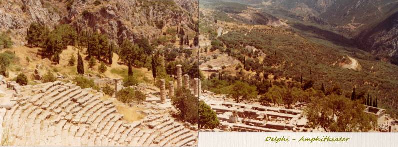 Om 11 uur vertrokken we vanaf onze camperplek. Op weg naar Delphi langs een schitterende kustweg. Aan de ene kant steile rotswanten en aan de andere kant de diep blauwe golf van Korinthe. Onderweg zagen we een meloeneboer, die zijn zoontje van 14 jaar autorijles gaf. De wagen slingerde alle kanten op. Ook zagen we oude vrouwtjes op ezels. Ezels worden veel gebruikt als lastdier, maar ook voor transport. Wat ook op viel was de typische huizenbouw. Eerst wordt een skelet van beton gegoten met een gegoten betonnen trap aan de buitenkant. Wanneer dit klaar is worden de muren gemetseld. Het resultaat een huis met spierwit gepleisterde muren en een plat dak. Ook zagen we prachtige kerkjes, vaak boven op een heuvel, met ronde torentjes en boogjes. Delphi ligt hoog op een berg. Om er te komen moet je een steile weg omhoog. Langs de weg loopt een betonnen kanaal, waarin zoet water naar beneden stroomt. Vlakbij Delphi zijn grote bauxiet mijnen. De grond is rijk aan ertsen. Af en toe is de grond knalrood. Soms ook spierwit. We hebben ook kalksteengroeven gezien, waar ze met dynamiet werkten om de brokken los te krijgen. Bij Delphi parkeerden we de auto en stapten op goed geluk naar een van de bezienswaardigheden. Het bleek het belangrijkste te zijn. Het was heel heet , 40 graden, dus de rest geloofden we wel. Delphi is bereoemd vanwege het orakel. Volgens de Griekse mythologie was dat een oude vrouw die voorspellingen kon doen uit dampen die uit een rotsspleet opstegen. Veet tempels waren gewijd aan Griekse goden. Bovenaan was het beste bewaarde stadion van Griekenland. Na Delphi koersten we richting Trikala. Langs de weg stonden steeds een soort offerandes. Hokjes met flesjes, kaarsen of iconen erin. Het landschap werd heel vreemd en zeer afwisselend. Een vrij hoge heuvelrug met daarna een vlakte van zo’n 40 km. Dan weer een heuvelrug enz. We hebben nog geprobeerd inkopen te doen, maar daarvoor waren we iets te laat. De slager en de bakker waren al dicht., dus moesten we maar wat improviseren. ’s Avonds gestopt bij een benzinestation in Neon Monastirion en daar overnacht.