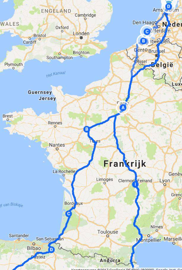 Deel 2 , hieronder, gaat over de terugreis via rondje Spanje en Frankrijk terug.
