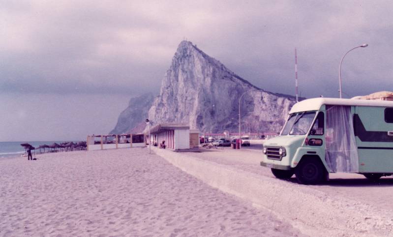 Om 9.30 uur opgestaan . De laatste broodjes opgegeten en de boel opgeruimd. Om 11 uur rijden we naar de stad. Halen geld bij de bank en boodschappen bij de supermercado. Whisky kost hier fl 6,-. Om 14 uur gaan we op weg naar Algeciras. Bij de benzinepomp vullen we alle tanks. Na een heuvelachtig landschap stoppen we bij Palmones aan het strand. Lekker gezond en gezwommen. Daarna rijden we naar Tarifa, het zuidelijkste puntje van Spanje. Je kan Marokko zien liggen. We doen navraag over reizen naar Tanger. We kunnen geen camping vinden en stoppen onder de rots van Gibraltar in de buurt van andere campers. Er is een militair vliegveld in de buurt. Straaljager piloten oefenen in landen en opstijgen. Het is enorme herrie, maar gelukkig duurt het niet lang. Na enige tijd krijgen we politiebezoek. Ze maken ons duidelijk dat er te veel campers op de plek staan. In ons beste Spaans leggen we uit “Por una noite?”, Gracias? Hij knikt. Dat is dus geregeld, Sommige andere campers vertrekken. Morgen gaan we naar Gibraltar en halen tickets voor Tanger.