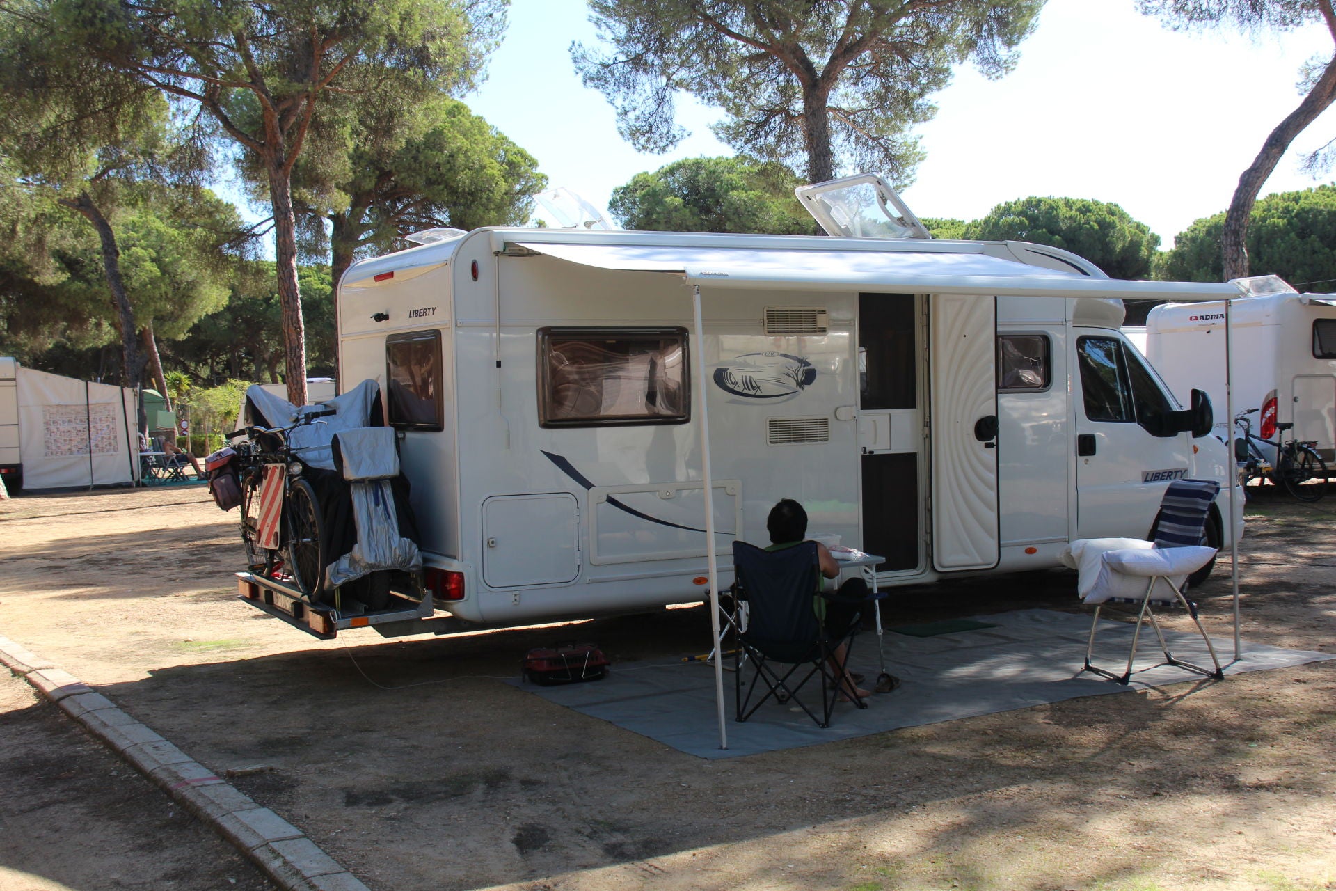 We pakken alles in en gaan op weg naar Isla Christina. De buurman heeft ons gewezen op een benzinestation waar je gas kan tanken en dat doen we dus nog even. We doen nog wat boodschappen en drinken een wit wijntje op het strand bij de plaatselijke tent. Jip is eindelijk weer eens naar buiten geweest na de afgelopen warme dagen en de hond naast ons. De camping lijkt wat donker en muggig, maar dat valt mee.