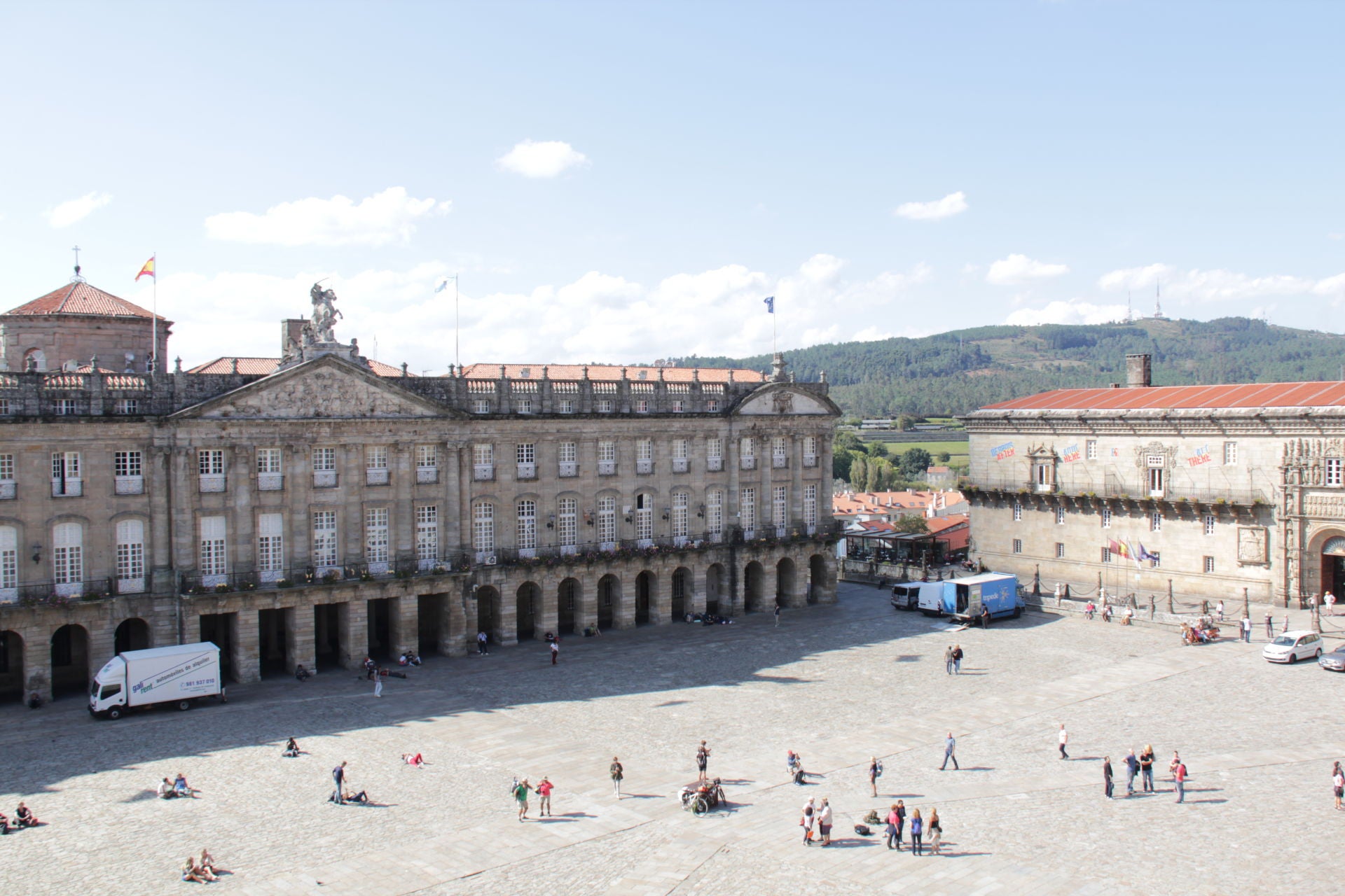 We lozen en verversen onze watervoorraad. Over de snelweg rijden we naar Santiago. Het voetpad volgt een andere weg. Pas in Santiago zien we de pelgrims weer lopen en de kerk bezoeken. Die staat helaas in de steigers. De camperplek in de stad trekt ons niet zo erg, dus rijden we later richting kust. Het verkeer is hier duidelijk drukker. Bij Ribeira vinden we een camping. Jip de poes heeft de hele dag geslapen dus hij wil er wel uit.