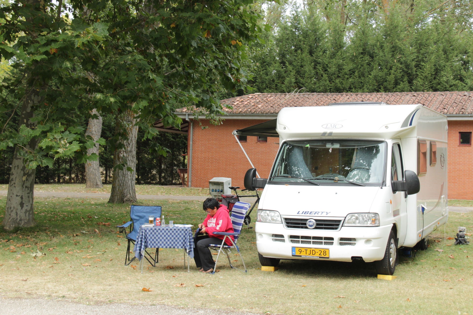 Om 11 uur vertrekken we richting Burgos. Het is een nieuwe snelweg. Onderweg stoppen we bij een duidelijk pelgrimslocatie en drinken daar koffie. Ook pelgrims stoppen daar. In Burgos zoeken we naar een camping. Op een gedeelte van de camping is een bijeenkomst van de locale caravan club. Daar mogen we niet staan, maar gelukkig is er aan de andere kant plek genoeg. Er is slecht bericht over koorleider Feico.